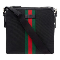 GUCCI Techno Canvas Web Flat Messenger Bag Black 100% authentic Brand new with dust bag Authentic GUCCI Techno Canvas Web Messenger Bag in Black. This chic messenger bag is crafted of black techno canvas with a green and red webbed stripe and long adjustable nylon body strap with silver hardware. The top zipper opens to a black fabric interior with a zipper pocket. Length: 11.00 in Width: 1.50 in Height: 11.00 in Details Online since:2023-03-02 Categories: women Category: Bags Sub-category: Handbags Designer: Gucci Condition: 0 Material: Cloth Colour: Black Width 11 in, Height 11 in, Depth 1.5 in Location: empty Reference: 31317780 Measurements Width: 11in Height: 11in Depth: 1.5in