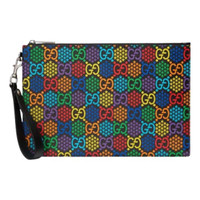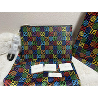 Gucci GG supreme canvas Psychedelic Portfolio Pouch clutch wristlet Brand new in box with dust bag Brand: Gucci Condition: Brand new with cards and dust bag, never used! 100% Authentic Psychedelic Supreme canvas, a material with low environmental impact Black leather trim Four card slots and one open pocket Detachable wrist strap with 4.7 drop Zipper closure 12W x 8.3H x 1D inches Moire and cotton linen lining Made in Italy Details Online since:2023-03-07 Categories: women Category: Bags Sub-category: Clutch bags Designer: Gucci Condition: 0 Material: Leather Colour: Multicolour Width 12 in, Height 8.3 in Location: empty Reference: 31441046 Measurements Width: 12in Height: 8.3in