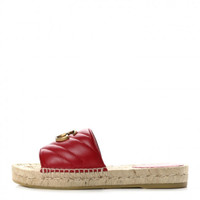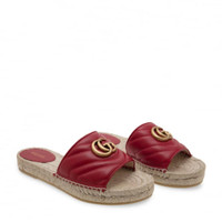 New GUCCI GG Marmont Nappa Matelasse Espadrille Slide red Sandals Size 39 / US 9 Verified business seller 100% authentic brand new pair of GUCCI Nappa Matelasse GG Marmont Espadrille Slide Sandals 39 in Hibiscus Red. These stylish shoes are crafted in quilted calfskin leather in red with an aged gold Gucci interlocking GG. Details Online since:2024-06-12 Categories: women Category: Shoes Sub-category: Espadrilles Designer: Gucci Condition: 0 Material: Leather Colour: Red Size: 39 EU Location: empty Reference: 45044263