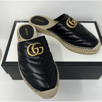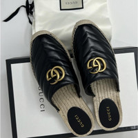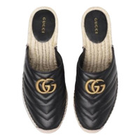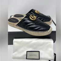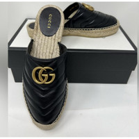 New Gucci GG Marmont Black matelassé quilted leather Chevron pattern Espadrilles Sandals Mules 100% authentic with full set EU 37.5 Almond toe Open back Iconic gold tone double G logo to the front Woven jute sole Made in Spain Verified business seller Details Online since:2024-06-05 Categories: women Category: Shoes Sub-category: Espadrilles Designer: Gucci Condition: 0 Material: Leather Colour: Black Size: 37.5 EU Location: empty Reference: 44845518