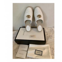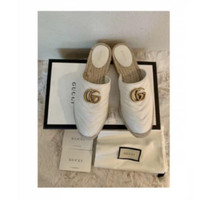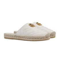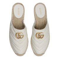 New Gucci Gg Marmont White Leather Double GG Espadrille Mules 100% authentic brand new Verified business seller -White matelasse chevron leather -Cord platform -Double G -20mm height Gucci Marmont White Leather Double GG Espadrille Mules. Crafted in Italy from calfskin leather, they are finished with an almond toe with a woven flat insole and rubber sole. Topping more than a few wish lists, Gucci's 'Pilar' espadrilles are the perfect blend of materials and just overall style. Details Online since:2024-04-10 Categories: women Category: Shoes Sub-category: Espadrilles Designer: Gucci Condition: 0 Material: Leather Colour: White Size: 37.5 EU Location: empty Reference: 43120181