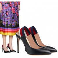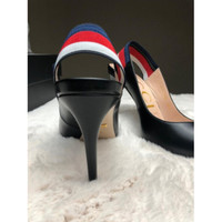 Brand new authentic in box with dust bag Heel measures approx. 4" (100mm). -Calfskin leather upper. -Web slingback pumps. -Elastic strap. -Leather lining; leather soles. -Made in Italy. Details Online since:2022-09-15 Categories: women Category: Shoes Sub-category: Heels Designer: Gucci Condition: 0 Material: Leather Colour: Black Size: 36 EU Location: empty Reference: 25310109 Measurements Heel height: 4in