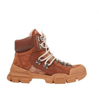 Brand new authentic in box with dust bag *Please make sure the shipping address is updated before making purchase* For security reasons, shipping address cannot be changed after sale is made! We are verified trusted Tradesy professional seller. -The Tradesy Authenticity Promise 100% AUTHENTIC, OR YOUR MONEY BACK! Shop with confidence!- We pack orders with care and video tape the whole process of packing. Hiking boots are still proving to be one of the biggest footwear trends for Fall '19. Gucci's 'Flashtrek' pair has been made in Italy from leather, canvas and suede adorned with the signature 'GG' motif and has a chunky rubber sole. They're finished with sporty details - like perforated cuffs - and embossed with the house's name at the tongue. o Rubber sole measures approximately 40mm/ 1.5 inches o Multicolored suede, leather (Calf) and canvas o Lace-up front o Made in Italy Details Online since:2022-09-15 Categories: women Category: Shoes Sub-category: Trainers Designer: Gucci Condition: 0 Material: Leather Colour: Brown Size: 37 EU Location: empty Reference: 25311262