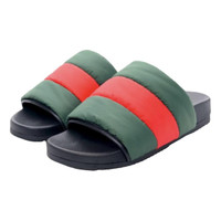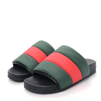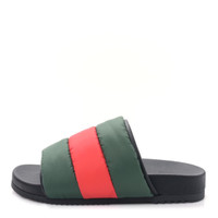 New GUCCI Nylon Web Womens Slide Sandals 38 Black Green Red 100% brand new authentic in box EU 38/ US 8 100% authentic GUCCI Nylon Web Womens Slide Sandals size 38 in Black, Green and Red. These stylish sandals are crafted of quilted nylon with the signature Gucci red and green web stripe. They feature a black leather trim and a contoured rubber base. Details Online since:2024-06-01 Categories: women Category: Shoes Sub-category: Sandals Designer: Gucci Condition: 0 Material: Cloth Colour: Multicolour Size: 38 EU Location: empty Reference: 44718652
