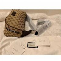 New Gucci GG supreme monogram large belt Fanny pack waist belt crossbody bag 100% authentic brand new, verified professional seller Fabric: Canvas Monogram print bag with leather trim Zip at top Interior back zip pocket Adjustable belt strap Lined Made in Italy Measurements Height: 5" Length: 10.8" Depth: 5.5" Details Online since:2023-11-07 Categories: women Category: Bags Sub-category: Handbags Designer: Gucci Condition: 0 Material: Cloth Colour: Brown Width 10.8 in, Height 5 in, Depth 5.5 in Location: empty Reference: 38369862 Measurements Width: 10.8in Height: 5in Depth: 5.5in