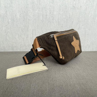 New GUCCI Interlocking G Star Patch Calfskin Corduroy Childrens Belt Bag Brown From Gucci Children’s collection, adults could wear too Length: 10.25 in Height: 5.25 in Width: 1.75 in Longest length: 35.00 in 100% brand new authentic GUCCI Calfskin Corduroy Childrens Interlocking G Star Patch Belt Bag in Brown. This belt bag is crafted of brown velvet with a brown leather star. This bag has a light brown nylon belt that can be worn as a belt bag on the hip or waist. It opens to a beige interior. Details Online since:2024-04-01 Categories: women Category: Bags Sub-category: Handbags Designer: Gucci Condition: 0 Material: Velvet Colour: Brown Width 7.25 in, Height 5.25 in, Depth 1.75 in Location: empty Reference: 42840298 Measurements Width: 7.25in Height: 5.25in Depth: 1.75in