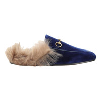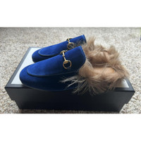 New GUCCI Princetown horsebit Fur velvet Cobalt Blue Slippers mules flats This is an authentic pair of GUCCI Velvet Fur blue Womens Princetown Slippers Slides size 37 in Cobalt Blue. These shoes are crafted of velvet in blue with the insole lined with lamb hair and a brass horsebit accent on the front. Brand new authentic in box full set Details Online since:2024-01-09 Categories: women Category: Shoes Sub-category: Flats Designer: Gucci Condition: 0 Material: Velvet Colour: Blue Size: 37 EU Location: empty Reference: 40195079