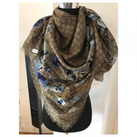Brand new authentic Never been used and no flaws in original packaging Great gift We are verified trusted Tradesy business seller. -The Tradesy Authenticity Promise 100% AUTHENTIC, OR YOUR MONEY BACK! Shop with confidence! - We pack orders with care and video tape the whole process of packing. -No cancellations after confirmations. *Please make sure the shipping address is updated before making purchase* For security reasons, shipping address cannot be changed after sale is made. Keep the chill away with this lovely shawl wrap designed by Gucci! Wonderfully soft, 100% wool, Featuring stunning pansies on original GG monogram pattern with beautiful flowers, horsebits, chains and belts bordered by subtle fringe. GUCCI signature in one corner. Brand new with tags attached. You'll love it! Brand: Gucci 100% Authentic -Blue floral Pansies. -Original GG Blooms Pattern. -Lightweight 100% Wool. -Measurements: at 55" x 55" in. -Lightly Fringed -New with Tags -Made in Italy Details Online since:2022-09-15 Categories: women Category: Accessories Sub-category: Silk handkerchief Designer: Gucci Condition: 0 Material: Wool Colour: Multicolour Location: empty Reference: 25311067