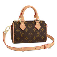 Louis Vuitton Nano Speedy monogram canvas 2022 Made in France 100% authentic new in box with dust bag, never used 6.3L x 3.9H x 3W inches Classic Monogram coated canvas Aged natural cowhide-leather trim Gold-color hardware Zip closure Strap:Removable, adjustable Strap drop: 17.9 inches Strap drop max: 23.2 inches Details Online since:2023-03-20 Categories: women Category: Bags Sub-category: Handbags Designer: Louis Vuitton Condition: 0 Material: Cloth Colour: Brown Width 6.3 in, Height 3.9 in, Depth 3 in Location: empty Reference: 31821813 Measurements Width: 6.3in Height: 3.9in Depth: 3in