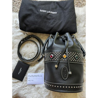 New Saint Laurent logo stud Bahia Embellished Leather Bucket Bag Retail price : 2650USD tax Brand new authentic with tag and dust bag Adjustable removable crossbody strap, 21" drop Top handle, 6.5" drop Dimensions: 6.5"W x 10.25"D x 6.5"H Drawstring closure Faux-jewel and stud embellishments Contrast topstich detailing Logo at front Silver-tone hardware Fabric lining Made in Italy Details Online since:2024-03-16 Categories: women Category: Bags Sub-category: Handbags Designer: Saint Laurent Condition: 0 Material: Leather Colour: Black Width 6.5 in, Height 10.25 in, Depth 6.5 in Location: empty Reference: 42375003 Measurements Width: 6.5in Height: 10.25in Depth: 6.5in