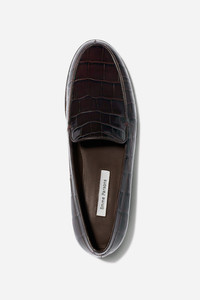 A refined loafer in a classic slip-on style, the Danielle is rendered with a welted sole and designed to last years with proper care. A day-to-night silhouette, the loafer’s croc-print leather adds richness to a grounded ensemble.Due to the artisanal nature of each handmade pair of shoes, the croc print leather will have slight pattern variations making each pair unique. SIZE & FIT - Fits true to size, take your normal size - Fits regular or narrow feet best MATERIALS & DETAILS - Heel Measurement: 1" / 25mm - Dark brown crocodile embossed patent leather - Slip on - Made in Italy - Leather Working Group certified for responsible leather production