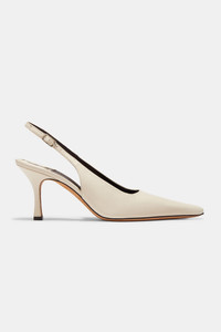 Provocative and streamlined, the Elana’s elongated lines lead to a carved square toe and is set atop a slightly flared heel. SIZE & FIT - Fits true to size, take your normal size MATERIALS & DETAILS - Heel Measurement: 3" / 80mm - White nappa leather - Adjustable straps - Made in Italy - Leather Working Group certified for responsible leather production - REACH certified for responsible leather production