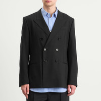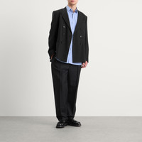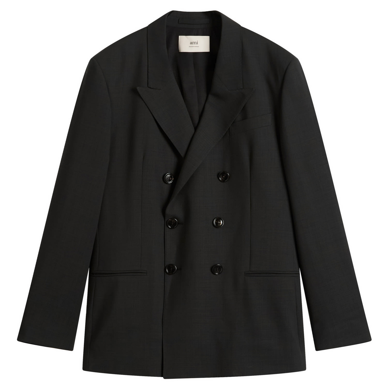 Timeless tailoring meets AMI Paris’ Parisian design codes in this blazer. Cut in a clean, straight silhouette, this double-breasted piece is crafted from lightweight wool twill and finished with horn buttons for a subtle luxury touch. With piped pockets, buttoned cuffs, and side slits, it’s a classic built for the modern wearer. - 100% New Wool - Notch Collar - Double-Breasted - 6 Horn Buttons - Piped Pockets - Side Slits - Made in Portugal - Style Code: H25HBV006-WV0066-020H25