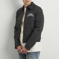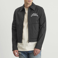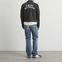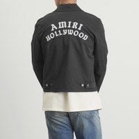 All roads lead to California for AMIRI’s latest collection. Styled as a classic work jacket, the Hollywood Work Blouson speaks the language of vintage Americana — a boxy fit, contrast collar and custom logo branding. Finished with a sun-faded effect, it looks just as though it’s put in the hours under the blazing California sun. - 92% Cotton, 5% Polyurethane, 3% Elastane - Classic Collar - Zip Closure - Front Pockets - Printed Branding - Style Code: AMOUBN1090-Black