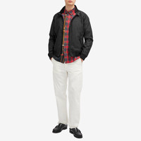 A collaborative twist on Baracuta’s classic G9 Jacket, the Barbour x Baracuta Porton Wax Jacket represents the meeting of two British legends. Crafted from sturdy waxed cotton, it features a traditional tartan inner and a cord-lined collar. Finished with rib knit trims and tonal logo embroidery for each brand, it’s a true classic with a new twist. - 100% Cotton - Stand Collar - Zip Closure - 2 Front Flap Pocket - Embroidered Branding - Rib Knit Trims