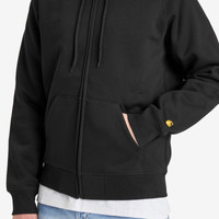 Season after season, Carhartt WIP faithfully delivers wearable versions of workwear staples, sticking to its successful recipe. The Hooded Chase Jacket is made from a robust, 13 oz cotton-poly material, brushed to create a soft, fleece-like interior. The jacket is cut to a regular fit, complemented by raglan sleeves, flatlock stitching, and a handy kangaroo pocket. Not forgetting the signature touch, an embroidered 'C' logo adorns the left sleeve. - 58% Cotton, 42% Polyester - Heavyweight 13 oz. Brushed Back Jersey - Regular Fit - Drawstring Hood - Zip Closure - Split Kangaroo Pocket - Ribbed Cuffs & Hem - Embroidered Branding