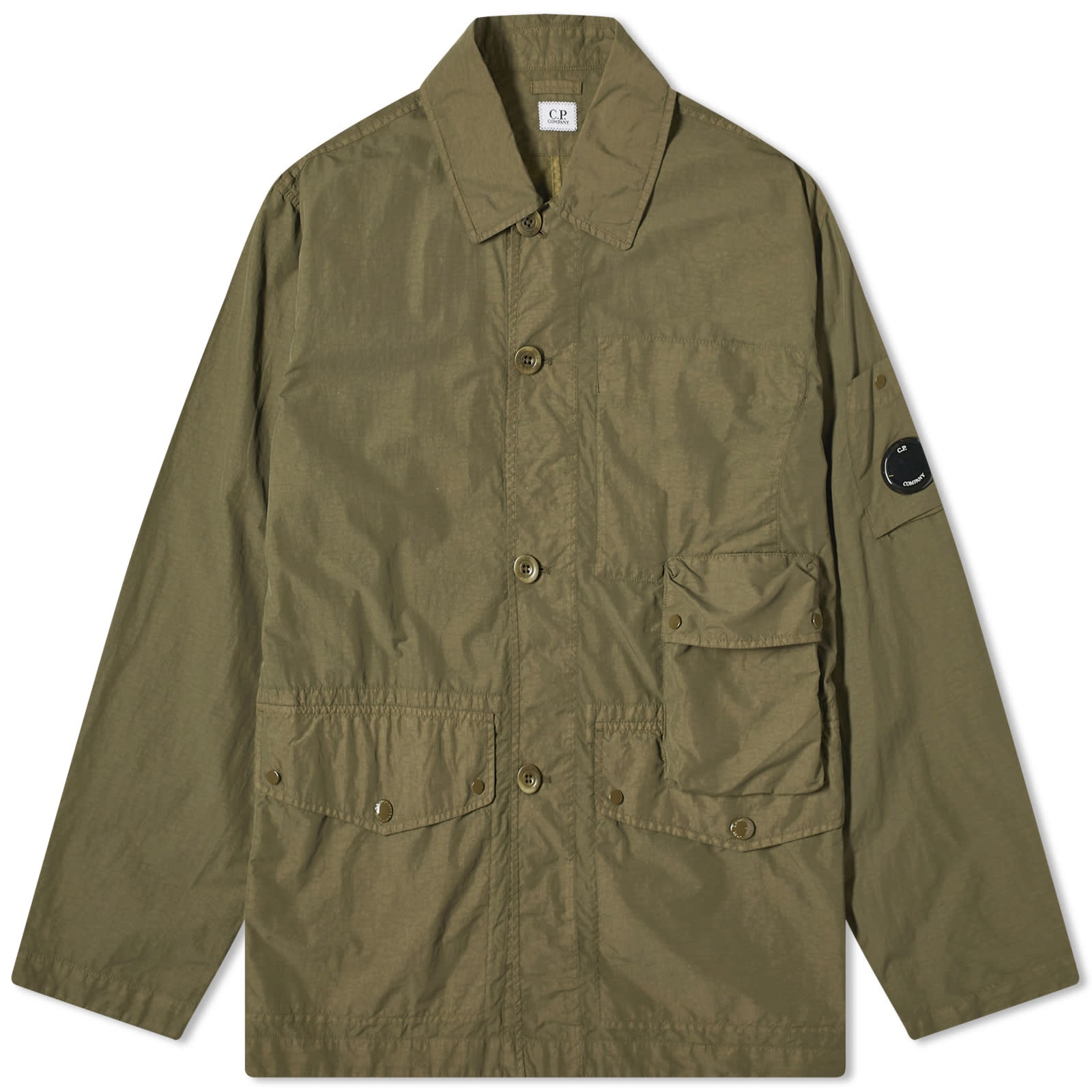 Expect thoughtfully designed outerwear with each C.P. Company collection. Crafted from Flatt Nylon, this Chore Jacket has a soft matte finish and a intense chromatic depth due to a garment dye treatment. With two secure chest compartments, this military inspired piece is detailed with a Lens google on the sleeve. - 100% Nylon - Classic Collar - Button Closure - Chest Pockets