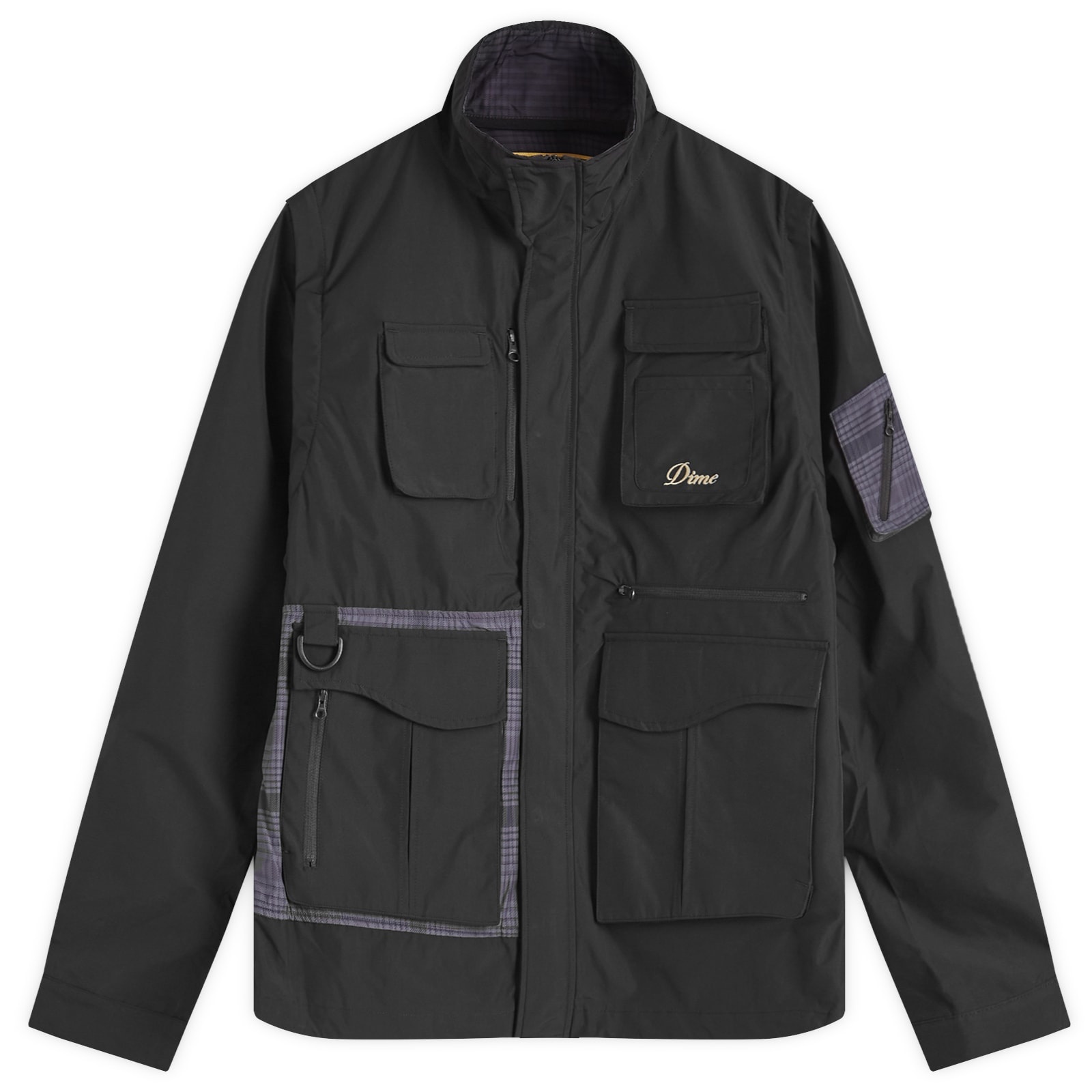 Montreal brand Dime have taken a short trip away from the skatepark with the Zip-Off Fishing Jacket, a street-style take on an old-school jacket worn by anglers braving the cold. It’s detailed with traditional tartan-checked panels and given a utilitarian feel with six pockets of varying shape and size. A storm flap and an adjustable hem lock out the chill, so you can stay warm and protected when you’re out amongst the elements. Or, if it starts to heat up, you can zip off the sleeves to transform it into a vest. - 100% Polyester - Funnel Neck - Zip Closure - Storm Flap - 4 Front Cargo Pockets - Zippered Sleeve Pocket - D-Ring Detail - Zip-Off Sleeves - Adjustable Hem