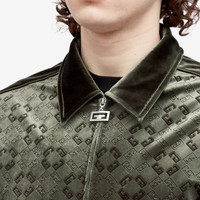 This Givenchy Velvet Blouson blends the brand’s iconic luxury design codes with a contemporary edge. Crafted from rich velvet with an all-over debossed monogram design, it offers a sophisticated yet relaxed silhouette, perfect for pairing with the matching bottoms for a coordinated, elevated look. - 78% Triacetate, 22% Polyester - Classic Collar - Zip Closure - 2 Side Pockets - Silk Piping - Made in Portugal