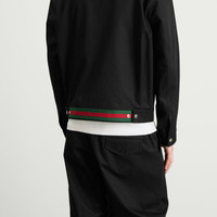 Hailing from the label’s Pre-Fall 2025 collection this Gucci jacket is cut from a durable cotton gabardine. Unlined, making it perfect for the transitional weather, this blouson is enriched with an embossed Gucci logo and a heat-taped Web detail. - 100% Cotton - Classic Collar - Zip Closure - Side Pockets - Style Code: 827503-ZAQH5-1000