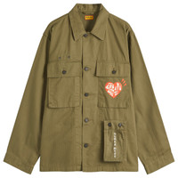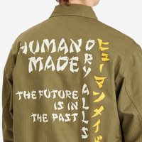 With its iconic “The future is in the past” mantra, Human Made redefines what it means to create fashion that respects heritage but thrives in the present. Exhibit A: this military-style overshirt. Made from herringbone fabric, it’s detailed with utilitarian patch pockets and a selection of brand motifs front and back. - 100% Cotton - Classic Collar - Patch Pockets - Printed Branding