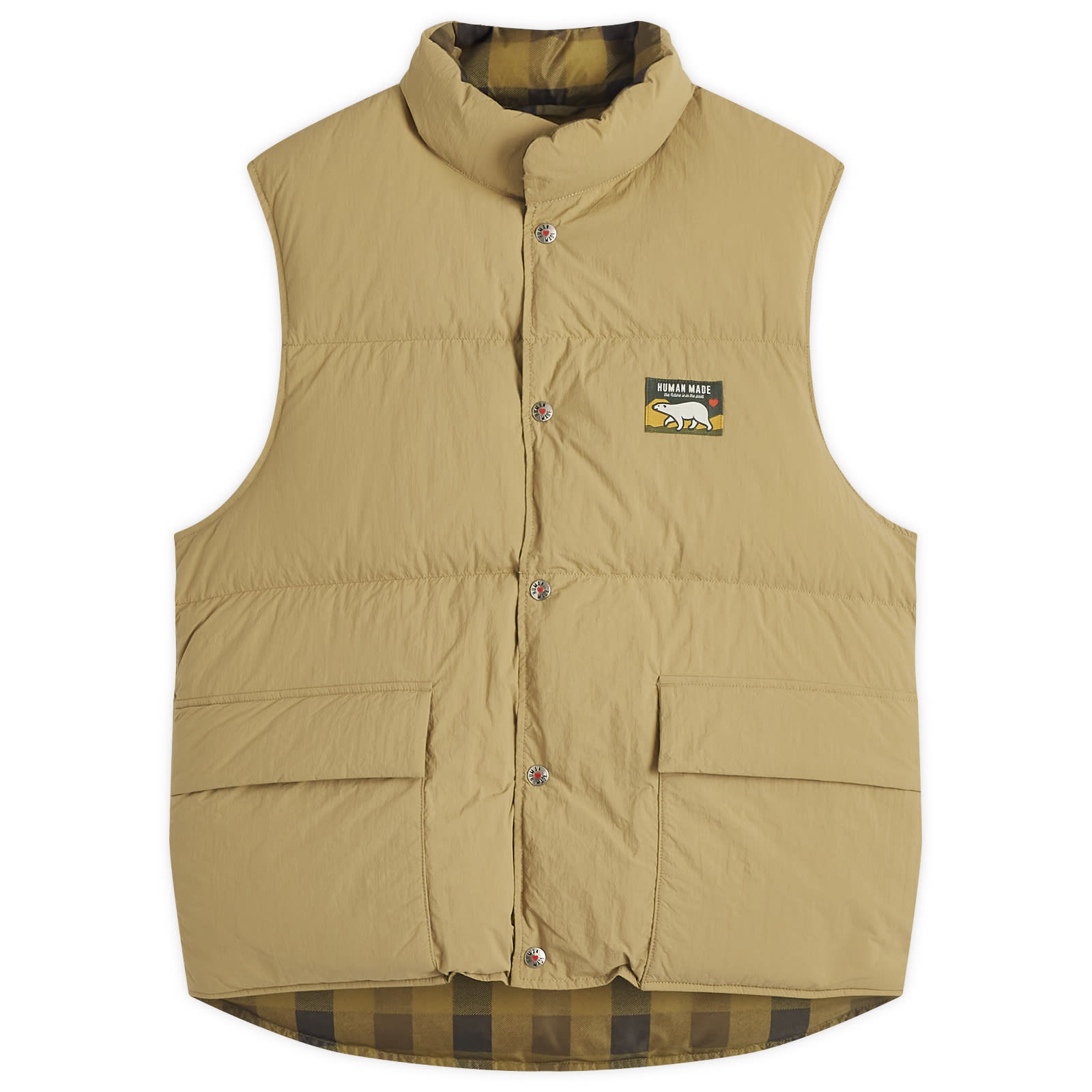 Full of contrasts, this Human Made Reversible Down Vest is down filled for optimal warmth. On one side, a simple design is accented by a printed logo whilst on the other side, an all over check pattern features a signature heart motif. - 100% Nylon - Funnel Neck - Snap Button Closure - Flap Pockets