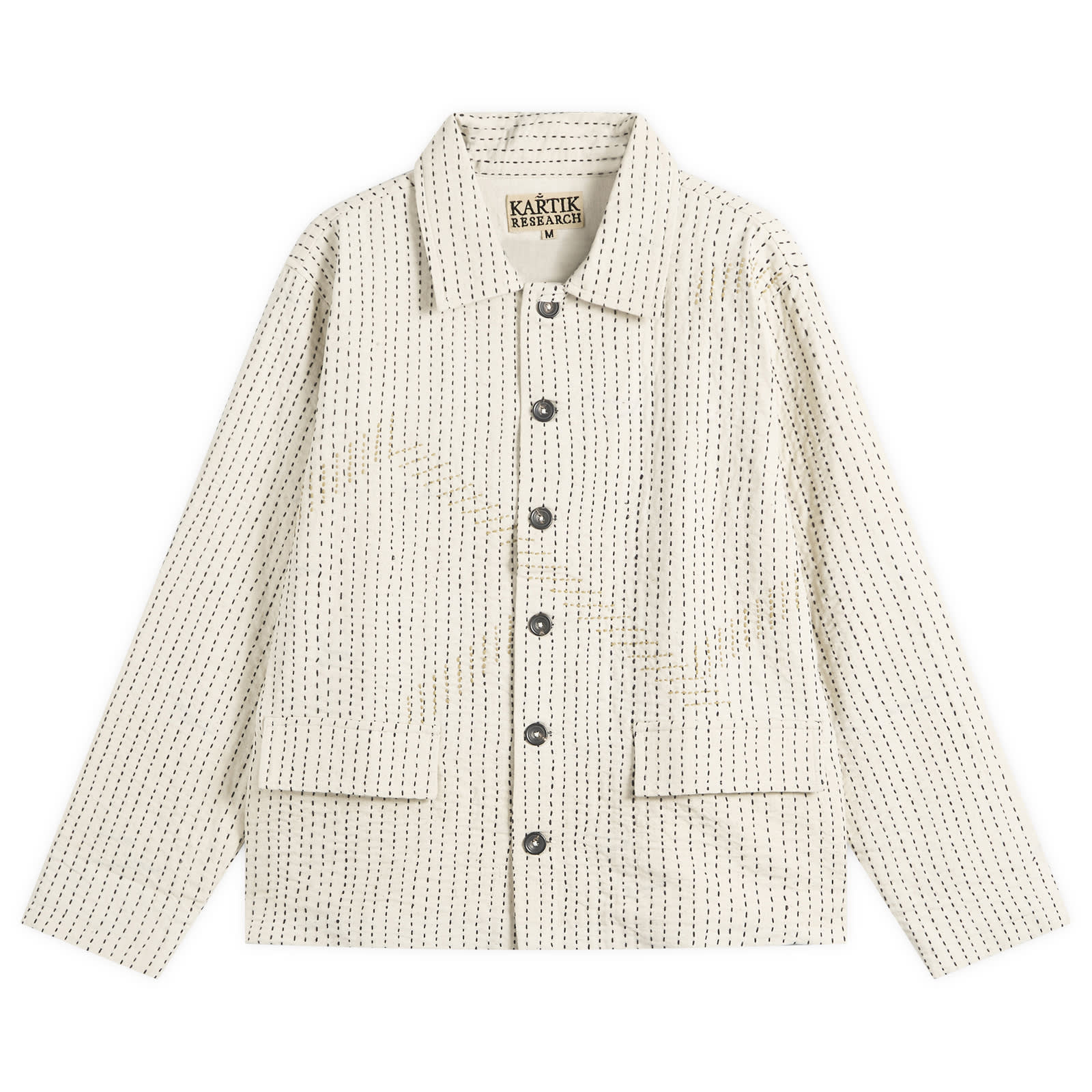 Kartik Research reintroduces humanness into clothing through forgotten Indian crafts. This Kantha jacket features intricate hand embroidery, horn button closure, and classic shirt styling. Each piece embraces its own imperfect character, celebrating the artisanal touch that makes every jacket truly one-of-one. - 100% Cotton - Classic Collar - Horn Button Closure - Kantha Embroidery - 2 Flap Pockets - Style Code: FW25-17