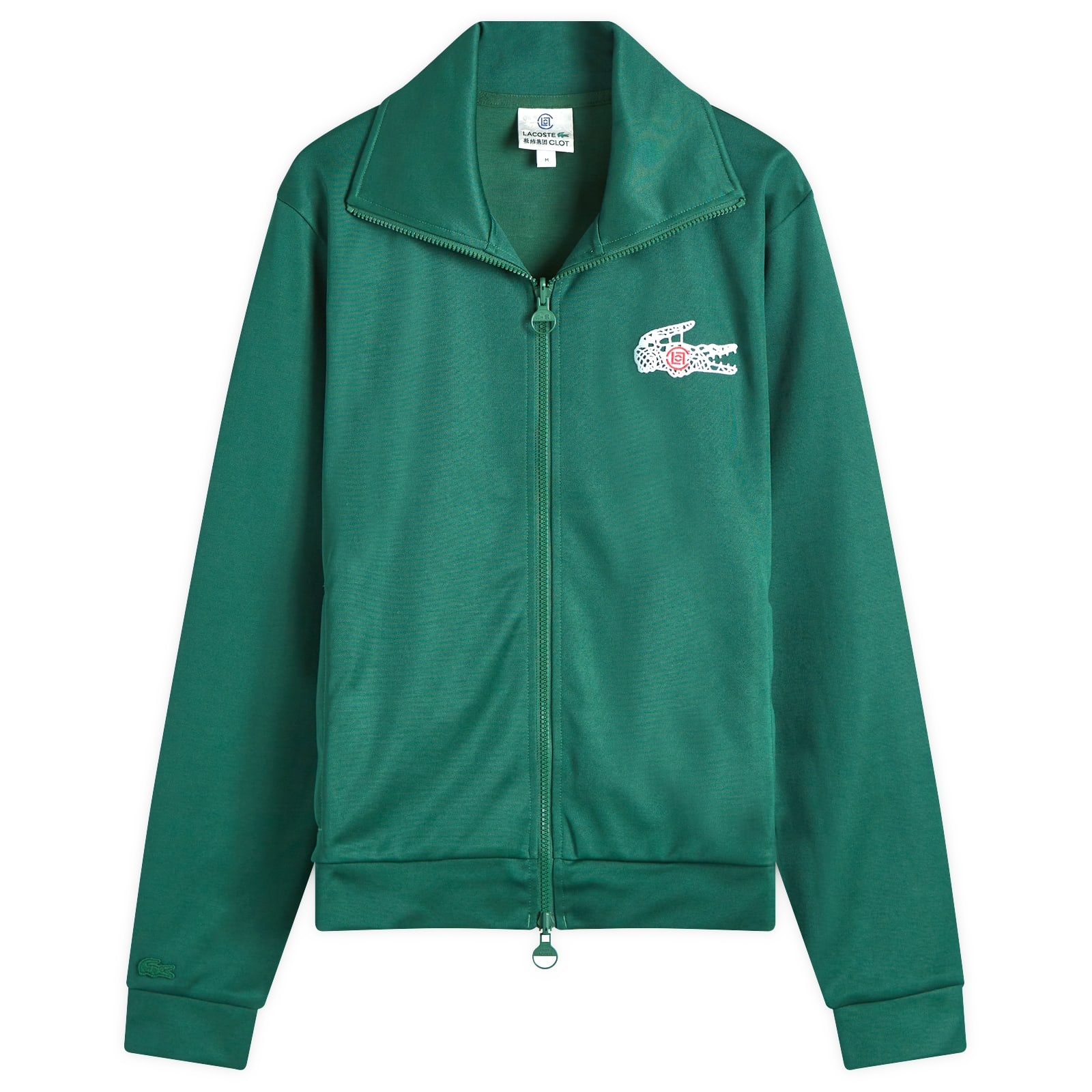 In the middle of fashion and sportswear, this Lacoste x CLOT Track Jacket is crafted with an interlock fabric with an elegant finish. With practicality appearing in the form of two side pockets, a collaborative crocodile logo sits on the chest. - 51% Polyester, 49% Cotton - Stand Collar - Button Closure - Side Pockets - Ribbed Trims
