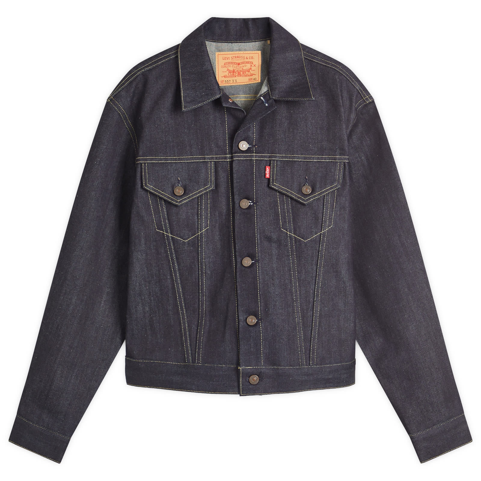 No need to dig through vintage shops for that perfect denim jacket. The Levi’s LVC 1961 Type III 557 Kaihara Denim Jacket is a true-to-the-original reproduction of the 1961 557 Trucker. With all the classic touches, like the pointed collar and waist adjusters, plus pre-shrunk denim that fades beautifully over time, you get a one-of-a-kind piece without the hunt. - 100% Organic Cotton - Pre-Shrunk Denim - Pointed Collar - 2 Buttoned Chest Pockets - Side Waist Adjusters - Woven Brand Tab - Product Code: 74998-0003-BLU