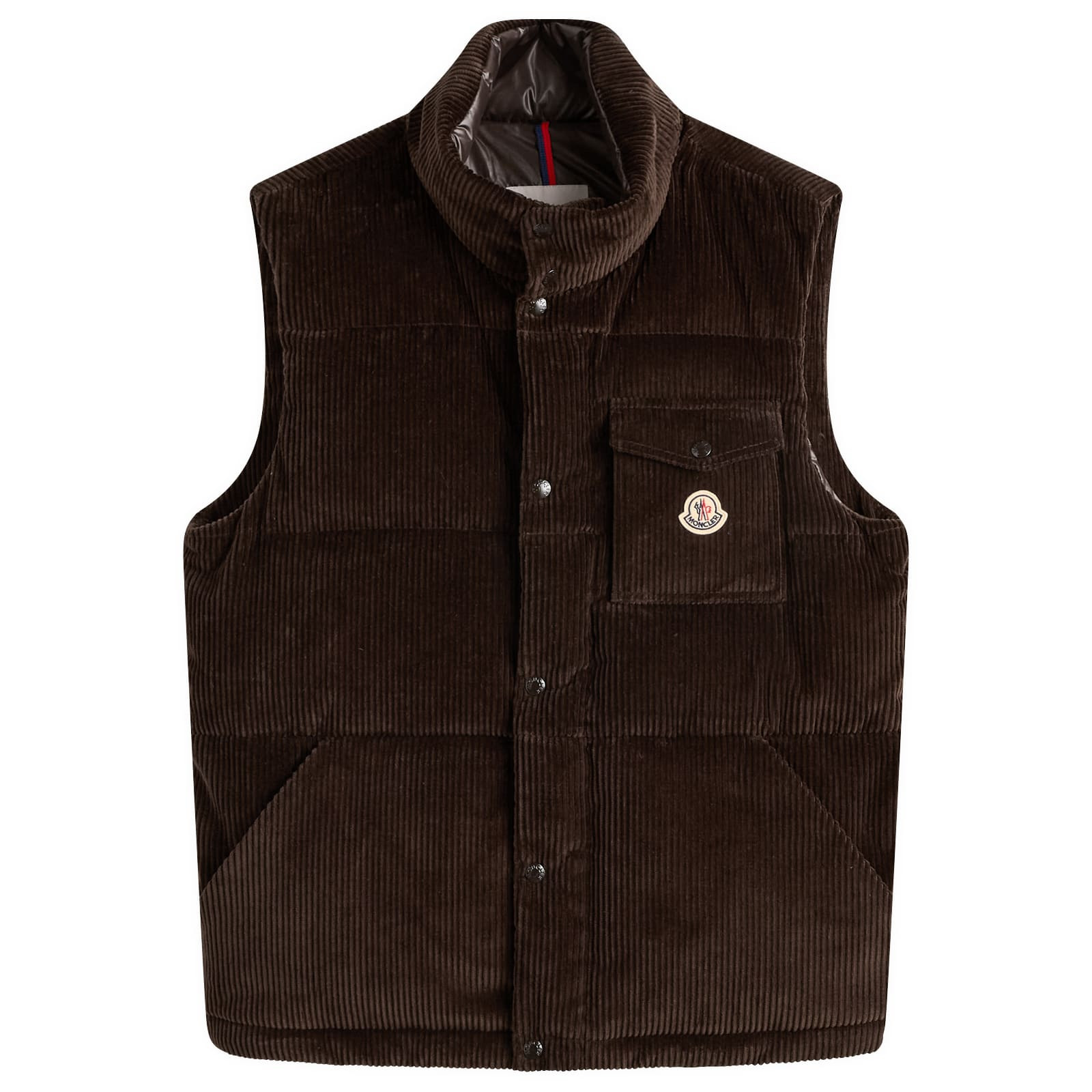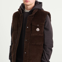 Moncler spotlights the ribbed texture of corduroy on the Agen vest. Packed with feather down, it delivers warming insulation exactly where you need it. Made compete with classic boudin quilting and a logo-brandishing chest pocket, it’s a prime example of the endless versatility of Moncler’s luxury outerwear. - 100% Cotton - Padding: 90% Down, 10% Feather - Stand Collar - Zip & Snap Button Closure - Chest Pocket - Kangaroo Pockets - Inner Zip Pocket - Adjustable Hem - Style Code: 1A001-91-598XG-259