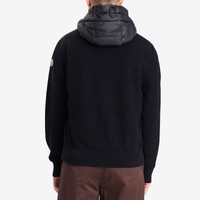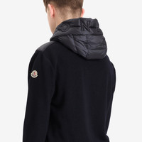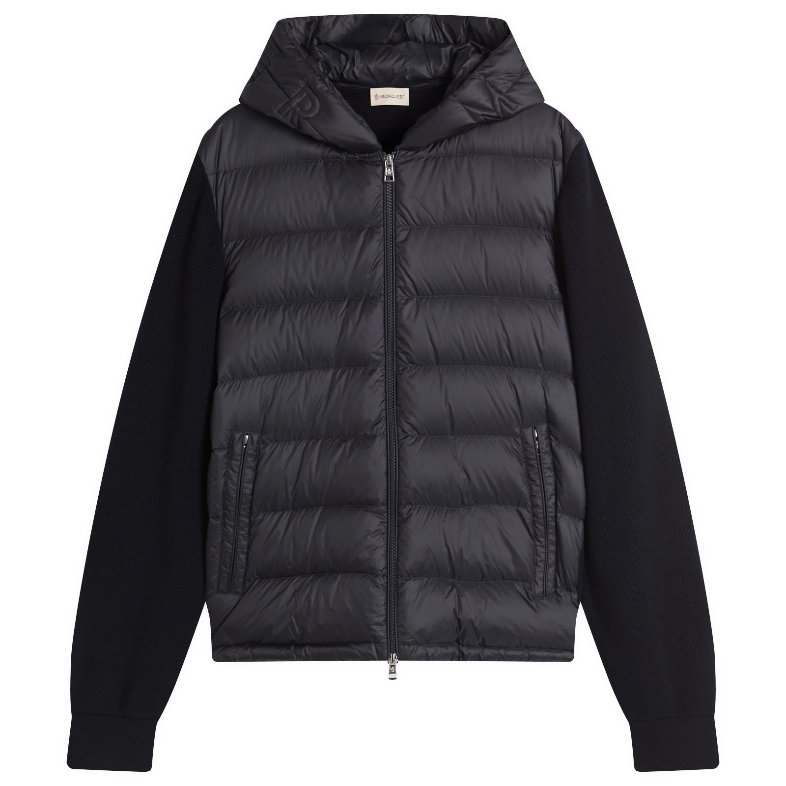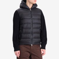 Hybrid by design, this Moncler Hooded Jacket combines a down filled body with finely knitted sleeves. Allowing for ample storage, two slip pockets add a touch of functionality, whilst a felt logo patch adorns the sleeve. - 50% Nylon, 50% Cotton - Fixed Hood - Zip Closure - Side Pockets - Style Code: 9B000-06-M1131-776