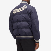 Merging collegiate style with its signature Alpine sensibilities, Moncler present the Lateltin Bomber, specially-crafted for your outerwear collection. A varsity-inspired logo features at the left chest, paired with further branding spanning the back shoulders. Ribbed knit trims and snap buttons add to the sporty aesthetic, and premium down provides the signature comfort and warmth that has come to be expected from the Milan-based brand. - 100% Polyester - Padding: 90% Down, 10% Feather - Zip & Snap Button Closure - Snap Button Pockets - Zipped Interior Pocket - Ribbed Knit Trims - Embroidered Branding