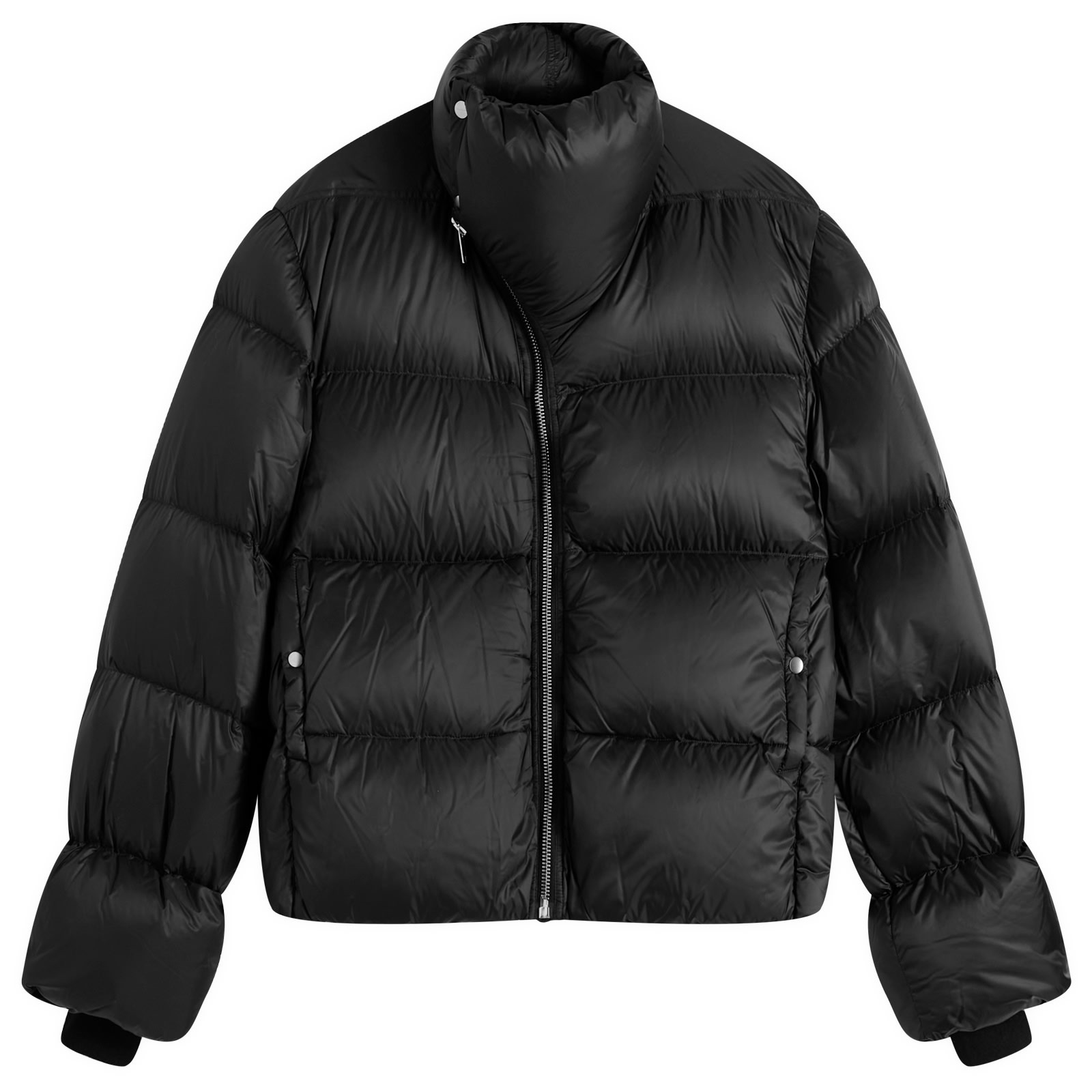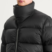 Take on the cold with gothic sensibilities thanks to this Rick Owens jacket. Made using a light nylon, a goose down padding provides optimal warmth. Featuring an asymmetrical zip closure, a signature oversized standing collar completes the look. - 100% Nylon - Down Filled - Zip Closure - Side Pockets - Style Code: RU02E1797-NPD3-09