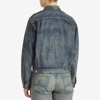 Crafted in the USA from premium 14 oz Japanese denim, this RRL Jacket undergoes an indigo wash treatment for a distinct look. With abrasions throughout, flap pockets stitched on the hem offer a dose of practicality and style rolled into one. - 100% Cotton - Classic Collar - Button Closure - Flap Pockets - Made in USA