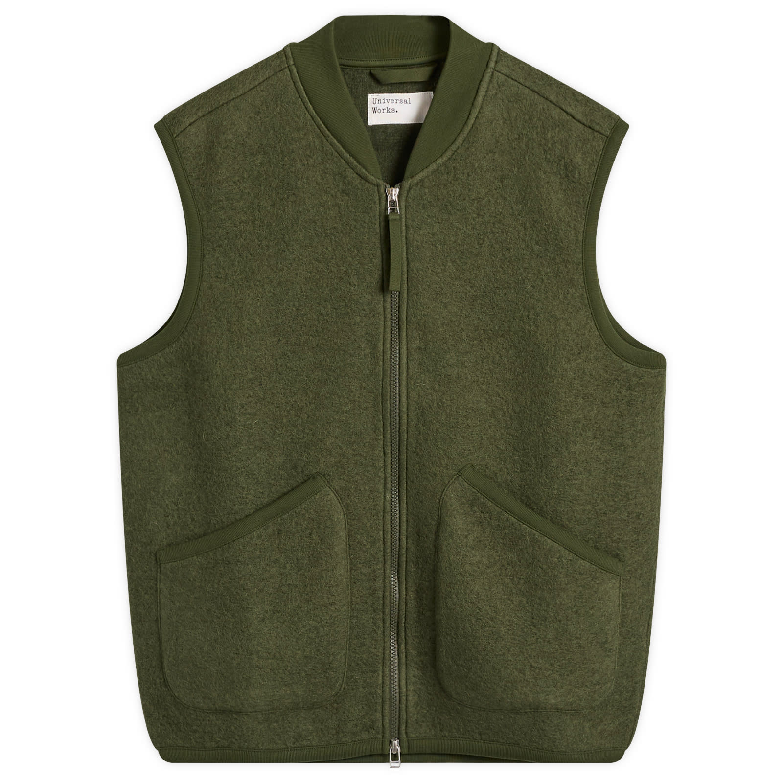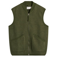 Universal Works’ no-nonsense, practical approach to fashion celebrates the balance between utility and style, offering pieces that are versatile, durable, and easy to wear. Arriving in this colourway exclusive to END., the wool fleece zip waistcoat makes layering a breeze whilst offering a premium feel to the touch – thanks to its luxurious merino wool blend. Kept plain and simple, it’s finished with two slanted patch pockets above the hem. - 65% Wool, 35% Recycled Polyester - Front Zip Closure - 2 Patch Pockets - Cotton Ribbed Trims - Style Code: 00015-OLV