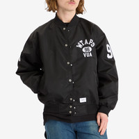 The WTAPS Team Stadium jacket channels bold sport style with a refined edge. Crafted from durable nylon twill and lined with a quilted pattern in recycled polyester taffeta, it merges athletic functionality with sleek design. Bold applique motifs on the back and sleeves make a striking statement, while the embroidered WTAPS branding at the front adds a signature touch. This jacket redefines sporty aesthetics with standout details and sustainable craftsmanship. - 100% Nylon Twill - Recycled Polyester Quilted Lining - Button Closure - Ribbed Trims - Front Pockets - Bomber Collar - Branded Applique - Embroidered Branding - Product Code: 251TQDT-JKM02-BLK