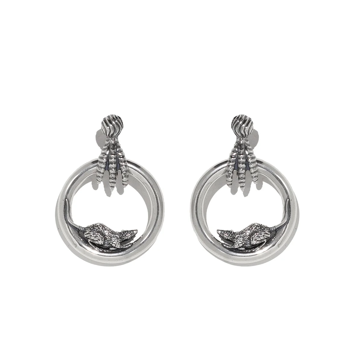 HOOP EARRINGS IN .925 STERLING SILVER. RAT MOTIF. ERD LOGO MONOGRAM ENGRAVED AT POST BACK. SOLD AS SET. MADE IN THE USA.