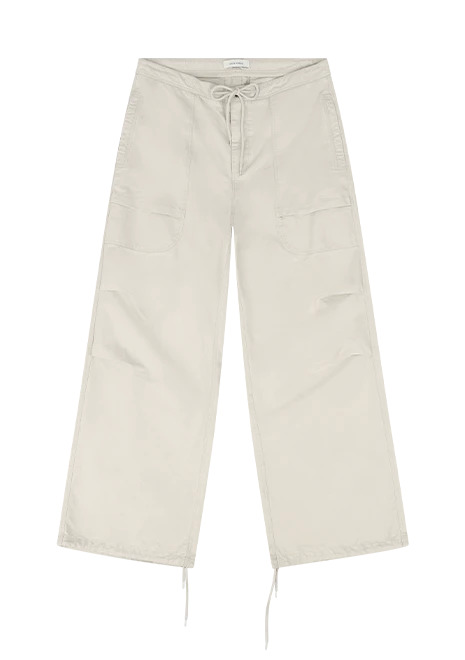 - 100% organic cotton twill - 310 gsm - This item is garment dyed and enzyme washed which may result in slight variation in exact colour - Wide leg cargo pant - Knee pleat detailing - Drawstring waistband and hem - Unisex sizing