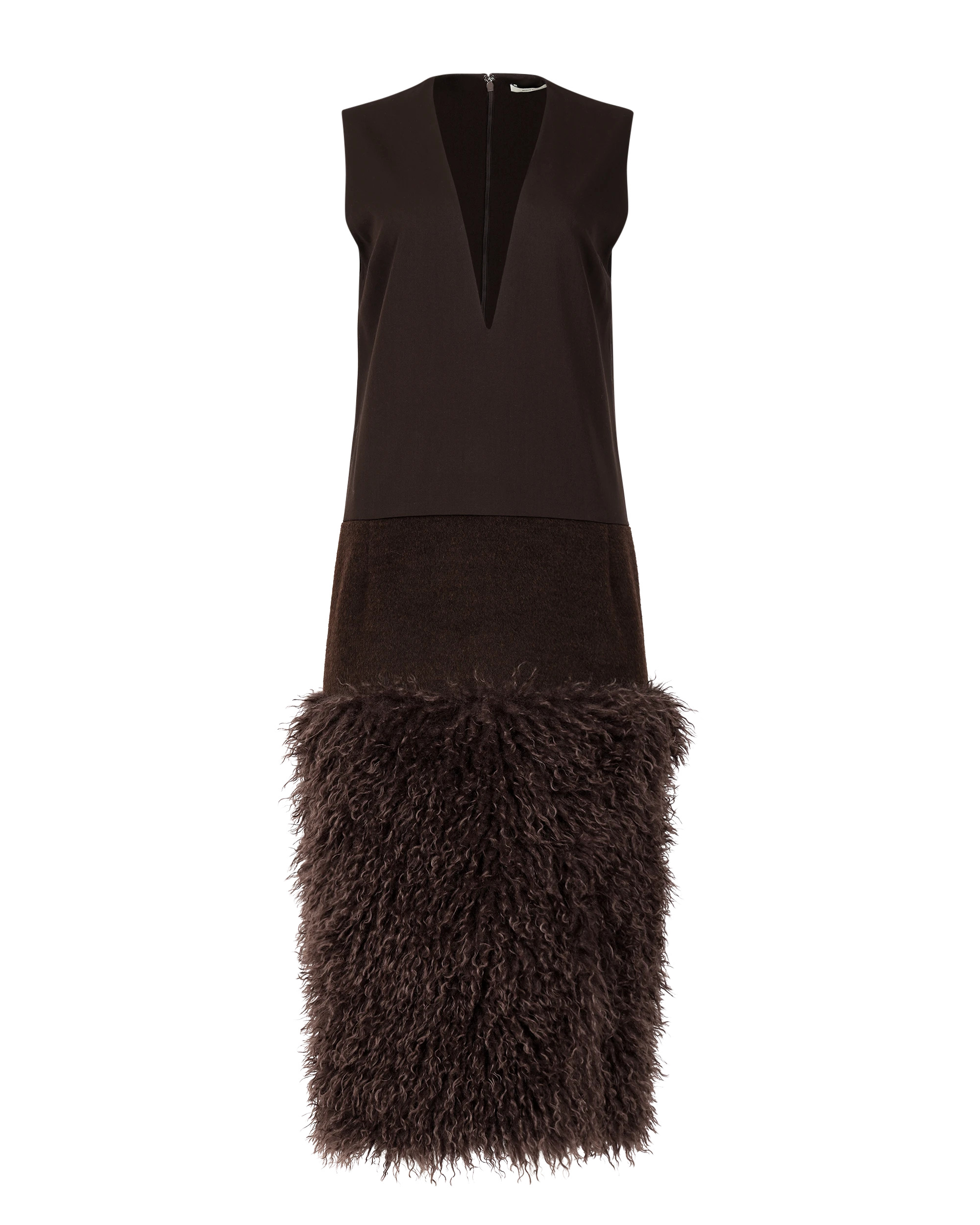 - 100% WOOL - V NECK - LOOSE FIT - CONTRAST WOOL PANEL - CONTRAST FUR PANEL - FRONT VENT - YKK INVISIBLE ZIPPER