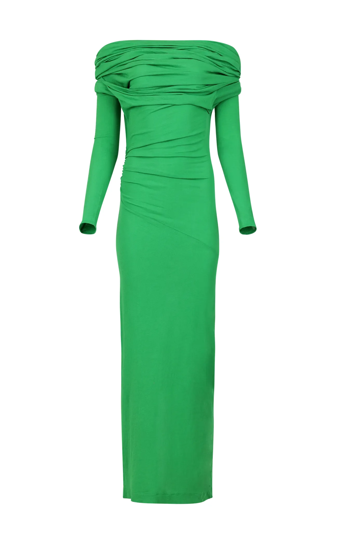 - 94% COTTON 6% ELASTANE - DRAPE NECKLINE - PLEAT AND GATHERED DETAILING - MIDI LENGTH - BACK SPLIT