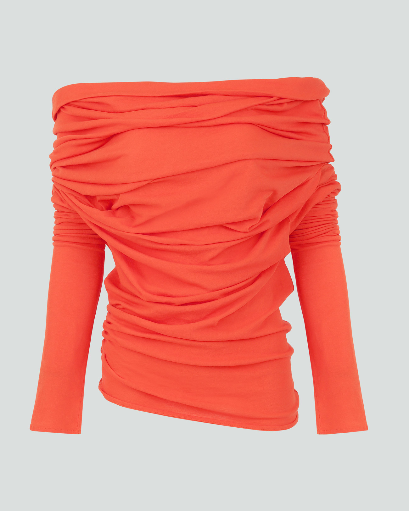 - SHEER COTTON BLEND - 94% COTTON 6% ELASTANE - DRAPE NECKLINE - PLEAT AND GATHERED DETAILING