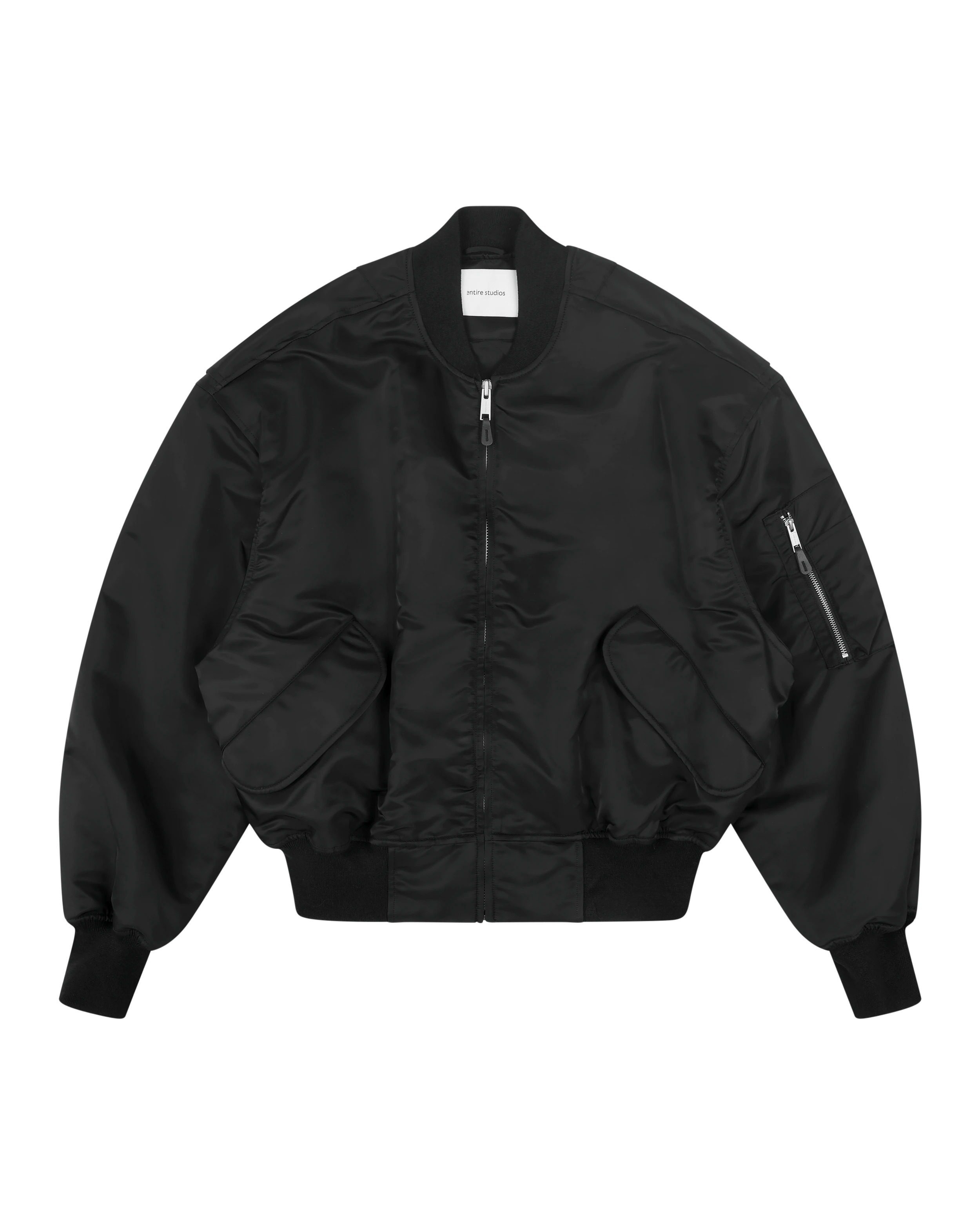 - 100% nylon satin - Shoulder pads - Back action flap detail - Waist flap pockets - Quilted lining