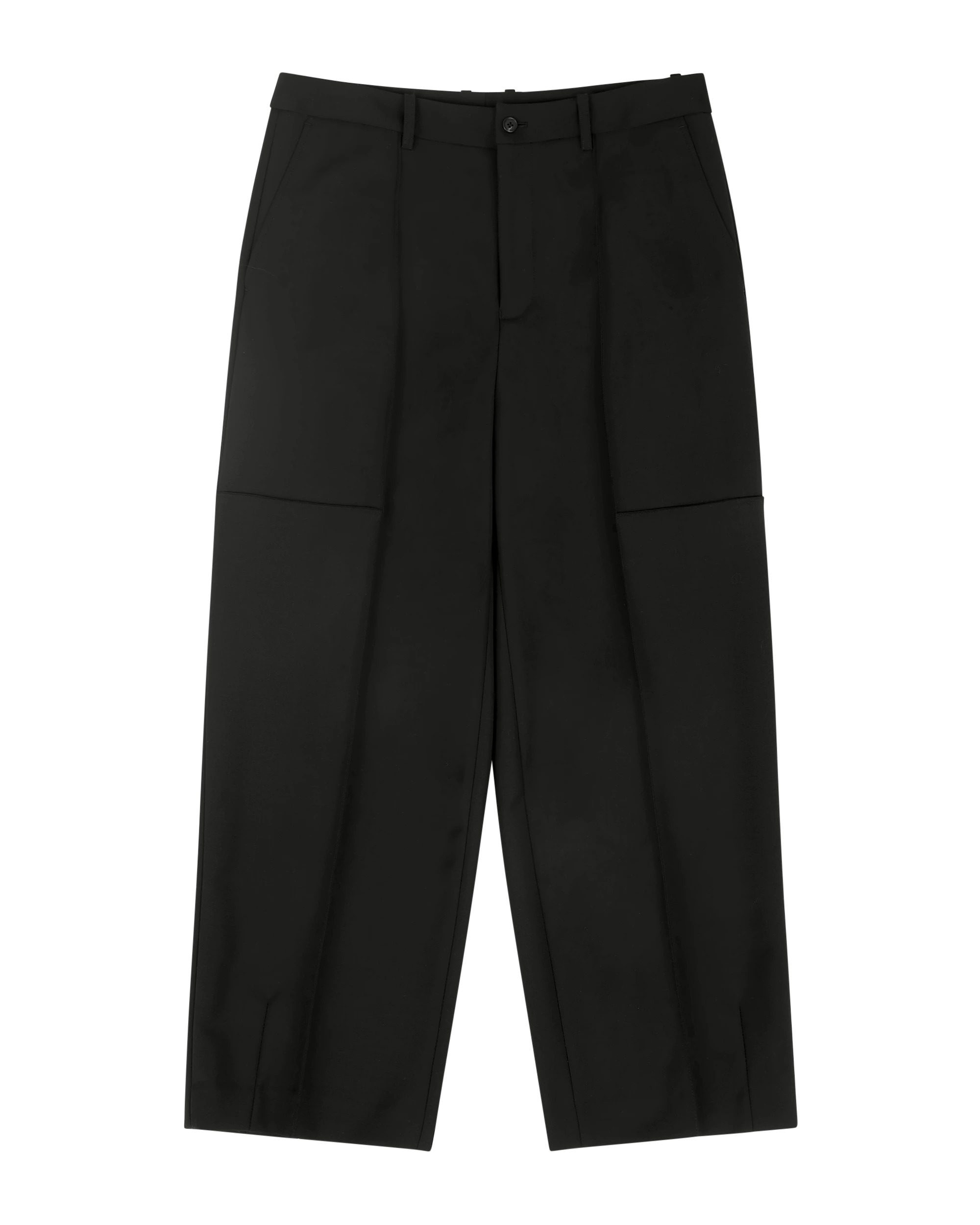 - 40% WOOL, 3% LYCRA, 57% POLYESTER - PINTUCK DETAILING - SLANT POCKETS - CARROT SHAPE - UNISEX FIT - YKK METAL FLY ZIPPER