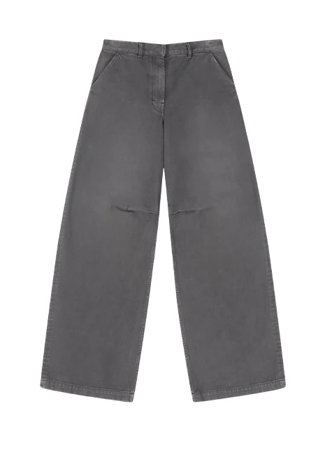 - 100% cotton Japanese denim - 13.75oz - Side and back pockets - Ykk metal zip and hidden button closure - Inner leg dart - Wide leg - Womens fit