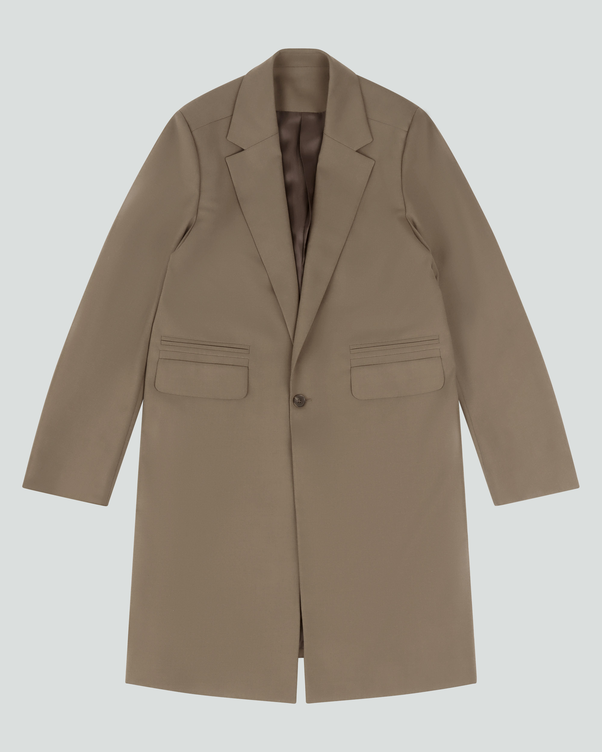 - WOOL SUITING BLEND - SINGLE BREASTED COAT - FULLY LINED - CF CONCEALED BUTTON CLOSURE - CURVED SLEEVE - DOUBLE WELT WAIST POCKETS - FLAP POCKETS AT WAIST - SHOULDER PADS