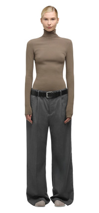 - 100% WOOL - STRAIGHT LEG TROUSER - CONCEALED BUTTON CLOSURE - SINGLE WELT POCKETS AT WAIST - CURVED LEG SHAPING, - REAR SINGLE WELT POCKETS - YKK METAL FLY ZIPPER