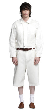 - 100% cotton Japanese denim - the wash of this denim is intentionally made to look dirty - 13.75oz - Chest and waist pockets - Ykk metal zips - Hidden metal snap dome closure - Boxy fit