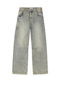 - 100% cotton Japanese selvedge denim - 13.75oz - Side and back pockets - Ykk metal zip and hidden button closure - Inner leg dart - Wide straight leg - Unisex fit