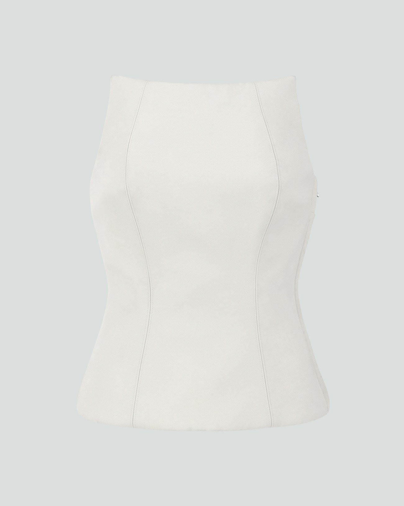 - WOOL SUITING BLEND - SIDE YKK OPEN ENDED ZIPPER - INTERIOR CORSET - SHAPING DARTS - FULLY LINED