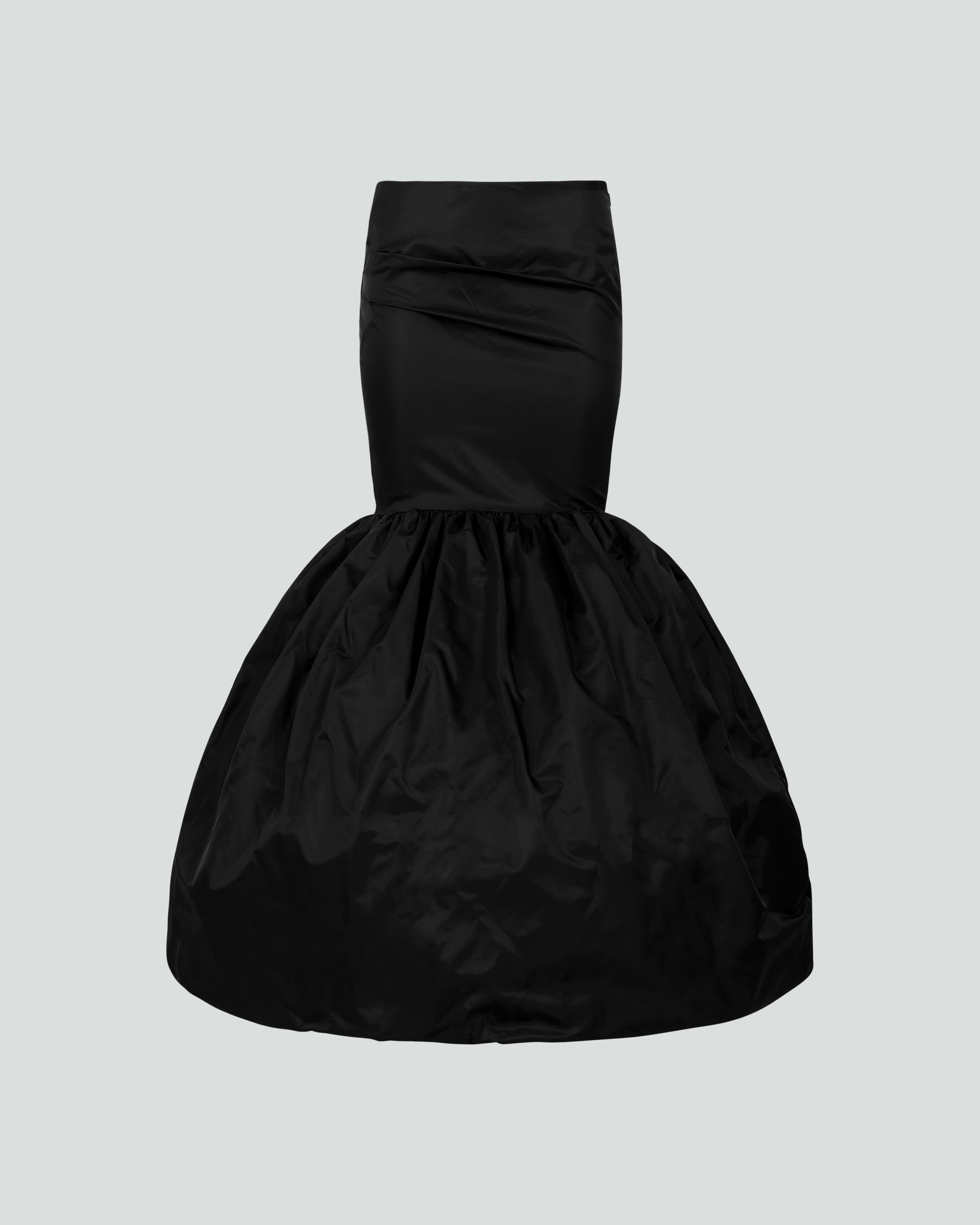 - 100% NYLON - SIDE SEAM YKK INVISIBLE ZIPPER - FLOOR LENGTH - PLEAT DETAILING - GATHERED PUFF BOTTOM - TULLE INTERIOR CONSTRUCTION - FULLY LINED
